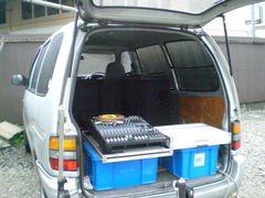 飯塚市商工会主催 大将陣桜まつりが開催されました 見事に満開の桜2500本の公園 物凄い来場者の中 次から次に 迷子は出るは 落し物は出るは・・・・・・ それはそれは慌しい一日でございました バンド演奏 キャラショーなど多彩な内容で 本日音響システムは JBL715を2対向 サブウーハー1対向 低音補強で迫力あるサウンドで望みました テレコ系もMD2台CD2台で再生を重点でシステムつくりです ミキサーも使用チャンネル多数の為 24チャンネル オープニングは プロの和太鼓からはじまり 続いて恒例商工会バンドの演奏 今回びっくりした事に このメンバーの中に 去年のミヤジック出演者もおられました いかに 幅広くバンドさんが参加しているイベントだと 実感いたします そして 開会式 市長さんや 役場のお偉い方々沢山来ていただいておりました そして 子供達 お待ちかね 仮面ライダーWの登場です 毎年この会場は新作のキャラクターが来ておりますので 物凄い数の来場者です 毎年このイベントに携わらせていただいておりますが 本当に毎年着実にお客さんは増えております 毎回目新しい内容のプログラムを持って来るわけでもなく 本当に 毎年全く同じ内容のプログラム ミヤジックもワタシ的には 毎年目新しいものを あちこちから探して 持ってきて手探りで やるより 決まった内容で中身を充実させたいのが本音で ございますが なにせ ワタシ一人で開催している訳ではございませんので なかなか思うように出来ておりません まあ それは置いといて ご覧の状態でございます 大体の数で 5000人超です 凄いとしか 言い様がございません このサービスエリヤ内 全てに音声が届くように しっかりシステム作りをさせていただきました そして 次には大道芸 当然プロのパフォーマンサー ミスターブンブン氏 パフォーマンスも当然 トークも 会場を笑いの渦に してしまいます 特に彼のリンゴ芸は大爆笑です ワタシも何度もご一緒させていただいておりますが 毎回 彼のパフォーマンスには ド肝を抜かれます とにかく楽しい一日 子供達もいい春休みの休日だったと思います いよいよ明日開催の 飯塚市商工会主催 大将陣桜まつり どうやら 天気はいいようです 今日ステージの製作を行いました 会場広場の土手の上が丁度いい感じで一段高く なっております そこをステージにいたします すでに 背面にはイントレが設営されておりました 今回もステージ床には 物流用のパレットを使用いたします ミヤジックのときもステージ製作に大活躍していますこの パレット 丈夫ですが枚数が増えると 結構な物量になります 今回は40枚ほど現地に運びこみました 綺麗に並べると 間口6300 奥行き5500 結構な広さになります そしてこのままでは 穴だらけで見た目も悪く 危ないので 5ミリのベニアを上に敷き詰めて完成 お客さんの方から見るとこんな感じです 明日は早朝より後ろ幕や看板の取り付けを行いまして 音響設営も同時に行います 今日聞いたところ 例年来場者は5000人との事 賑やかな一日となりそうです 田川 糸田で現在年1回ペースで開催されております ミュージックシティ というライブイベントがございます 28日はそのプレイベントという位置付けで 八幡にございます ライブハウスANDYにて ライブイベントが開催されておりました 午前中の福津でのイベントをバタバタ終了させまして 午後にはANDYに到着 出演は 1: KMG 2: 泥棒列車 3: BONTA 4: BRINKS 5: RUSTIC 6; 金さん銀さん&スケッターズ 7: COMBINATION 残念ながら コンビネーションのリハーサルには 間に合いませんでした 会場に付くなり 予想してた通り オーナーがニコニコして 今日はオペレートしてくれるん? 半分は最初からそのつもりで行っておりましたが と 言う事で乗り込みオペレートの開始です ミキサーの横のビールの空き缶はご愛嬌と言う事で いつものごとく勝手が解らぬまま 手探りで音調整をしながら リハーサルを進行していきますと どうしても思った感じに音が落ち着きません 車に積んでいたマイクを入れ替えて序々にリハと同時進行で 音つくりに励んでおりました しかし今回は持ち込みアンプの多さにはびっくりです よくもまあ あの狭いステージに所狭しとアンプがゴロゴロ バンドさんのセッティングも多種多様で 先週のミヤジックプレと変わらないほどの 長丁場で ございました でも初めてオペレートするバンドさん 何回かご一緒させて いただいたバンドさん やはりそれでもやっている間はとても楽しいひと時でした |