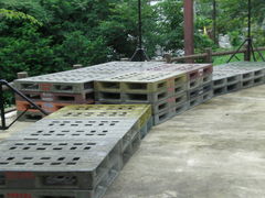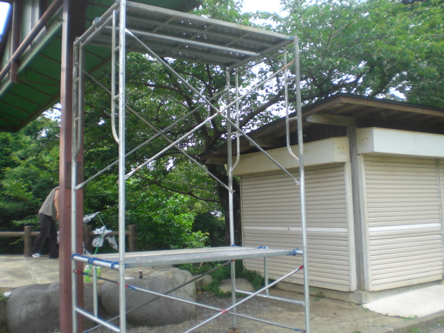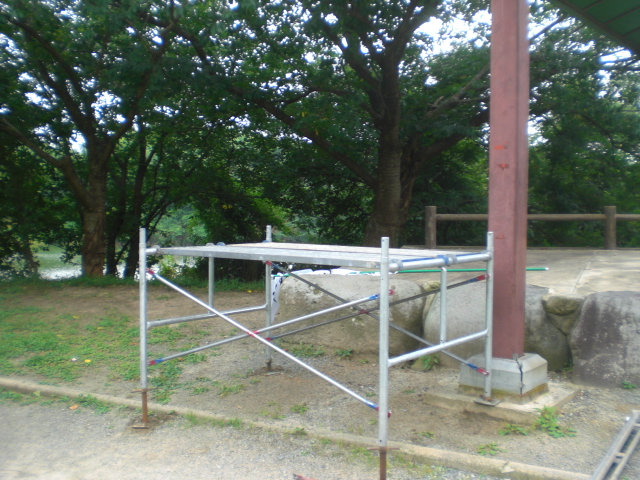 2週間後に迫っております ミヤジックのステージ設営を開始しました 資材を満載トラックに積みまして ドシャ降りの雨の中 宮地嶽神社の会場へ向かいました スタジオを出発したとたん 凄い雨 とても憂鬱に感じながら現場へ到着しますと なんとか雨だけは 降らずに作業を開始できました とりあえずは照明トラスの設営から始めまして 最近このために導入しましたと言っても過言ではない イントレの設営 やはり 導入して正解です 一人作業でも楽々組み立てが 完了いたします 工夫が要りますが・・・・ 小1時間程で イントレ完了 さてお次はステージひな壇の設営です 神社に預けております 物流パレットを資材置き場から 引っ張り出してトラック3往復 とりあえず去年と同じ高さまで積み上げまして 形は出来ました 後で正面から見てみますと ステージに対して 曲がった状態になっております 手直しが必要ですね とりあえず下準備は進んでおりますが 肝心なステージ屋根の修理が 全く手付かず状態です 本当に開催まで 屋根修理は完了するのでしょうか? さて来週は アコーステックステージの設営です これまた 何も無い所に組み立てる ちょっと 重労働になるでしょう 天気がよければいいですね |