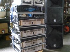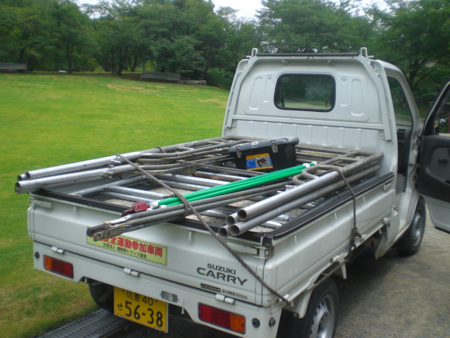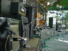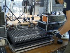 × [PR]上記の広告は3ヶ月以上新規記事投稿のないブログに表示されています。新しい記事を書く事で広告が消えます。 日にちが経つのも早いもので ミヤジック開催まで 2週間を切ってしまいました 気持ち的にはちょっと焦り気味でございます 今年の広報 印刷関係でつまずきまして 十分なポスター効果 チラシ効果が出来てるだろうか? この際残ったポスターをかき集めて 違法広告を行おうか? そんな事を考えてしまう今日この頃です 実はまだ 配布用チラシも完成しておりません 例年通りの 回覧板に添える事も今年は断念 新聞の折込もたぶん間に合いそうにない状態 例年ですと 今頃の時期 問い合わせ電話がかなり入っておりましたが 今年は全く電話もならず・・・・・・・・・・ 心配事は耐えませんね それでも 会場の準備は進めなくてはいけません 本日より 仕込みの1便目に行ってまいりました まずはスピーカーイントレの搬入 結構これだけでもかなりな重量物で 軽トラックにも 一杯になってしまいます 一度に全ての物量を持ち込みまして 一斉に作業をやるには 人出も必要になってしまいます 忙しい中 皆さんの手を借りて順調に作業を進めるよう 事前に段取りと人員配置など めんどくさいのが苦手な ワタシ 事前に少しづつ 一人で作業するのが 一番気楽でございます 去年製作しました スピーカーサイズに合わせた イントレ 今年も活躍いたします まだ ステージ上の屋根工事も行われてない状態ですが 9日までには 屋根工事も完了する予定でございます まずは一段目 レベルと角度を微調整しながら 組み立てまして 土台を作ります これが出来れば 後は早いものです 上に延長を組みつけまして チョチョッと完成 作業中 かなり沢山の人が神社内を徘徊しておりまして 皆さん 何があったんですか? と尋ねられました 完全に片付け作業をしているものと思われておりました 誰ひとり 何があるんですか? という言葉を聞くことは ございませんでした ちょっと寂しい気持ちになりましたね そして 最後に ミヤジックののぼり旗を括りつけまして 今日の作業は終了です 次の日曜10日から 本格作業に入ります その後は毎日 現場になんやかんや運び込む事となるでしょう ちなみに まだセミは鳴いてませんでした PR 去年は諸事情にて フリマの開催は見送りしました 今年のミヤジックはフリマもございます ![]() 只今出店される方大募集中でございます 受付は ミヤジックホームページ トップの エントリーフォームにて受付をしております http:// ![]() ![]() ■イベント開催日及び出店時間 平成23年7月16日(土)~18日(月・祝) 福津市 宮地嶽神社芝生広場(雨天決行) 16日(土) 16:00受付開始 出店 17:00~20:00 *合掌造りエリアは開催なし。 17日(日) 8:30受付開始 出店 10:00~18:00 18日(月・祝) 8:30受付開始 出店 10:00~18:00 * 搬入・出店時間は各店舗により異なりますので別途ご連絡致します。 ■出店要項 ・ 出店料は1ブース(2.5×2.5m),一日500円となります。 ・ お一人様2ブースまでお申し込みできます。 ・ 搬入時刻は午前8時より宮地嶽神社第一駐車場にて受付終了後にお願い致します。 ・ 飲食店以外の出店者車両は会場内に乗り入れることは出来ません。係員の指示に従い 入口の一時停車スペースに駐車の上、順次搬入後、車両はすみやかに駐車場へ移動して下さい。 原則として終了時間前の搬出は出来ませんがやむを得ず搬出される場合は必ず係員にご一報下さい。 先週のイベントで 出音がどうもおかしい アンプが一台あることを発見 通常の音量では解りにくい程ですが 大音量を出したときに明らかに LチャンネルとRチャンネルの音が違います そのときは予備アンプがありましたので その場は凌ぎました で本日改めて確認 8オーム500ワット出力のアンプが3台 それぞれパラレル接続して 実際に音を出して 確認です CDなどの音楽物でチェックするとウルサイだけですので 今回は ホワイトノイズでチェックしました テスターで出力DCを計れば簡単に解るのですが 音質まではテスターでは解りません ここは 耳で勝負です 結果 やはり 3台中1台 片チャンネル出力落ち・・・・・・ どうもHI落ちしているようで 出力が落ちているように 聞こえます しばらくは大出力アンプが必要な仕事はございません その間に修理ですね 過去一度も体験した事無い程の猛暑続きのワタシ的には3日間 とにかく大きな事故も無く 熱中症で救急車が出動する事も 無く 盛大に終了いたしました 来場されました皆様 参加された皆様 本当にありがとうございました 年々来場されるお客様も増えて参りまして 少しづつ進歩しているミヤジックでございます 今年は 2日間で2000人程の来場者があったようです アマチュアバンドのライブイベントでは 動員に限界があることは承知しております それでも 来ていただいてあるお客様には 十分楽しめる内容で・・・・・・・・・・ と あれこれ毎年工夫を凝らしておりますが まだまだ 途上状態でございます 今年は例年ポスターの挿絵を書